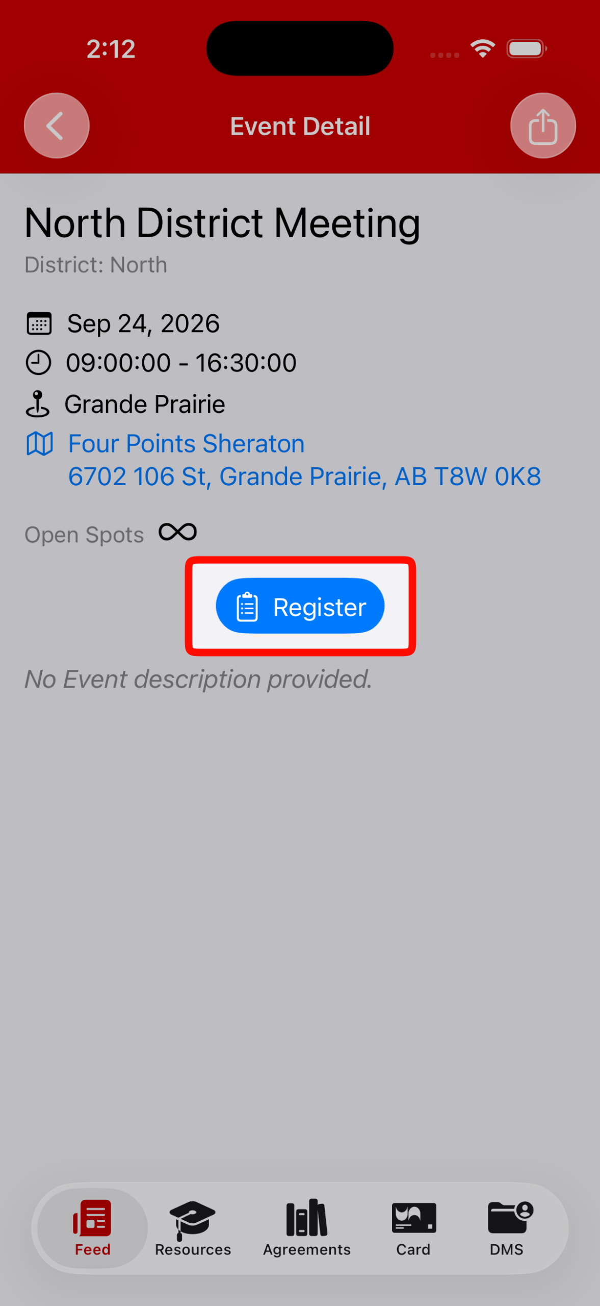 Currently, you can register for Events through DMS Web, or the iOS app.