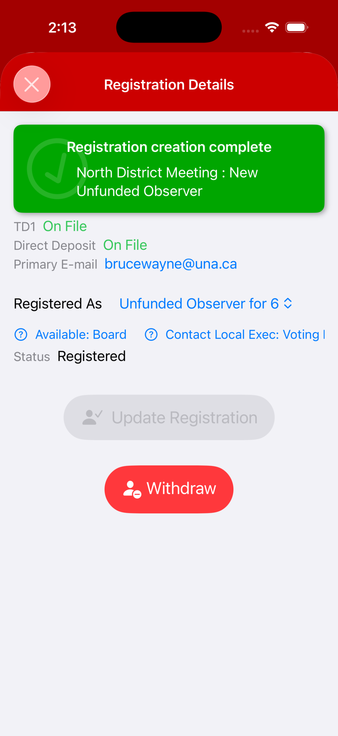 3. You’ll get a confirmation banner once you have registered. From here, you can also Withdraw: