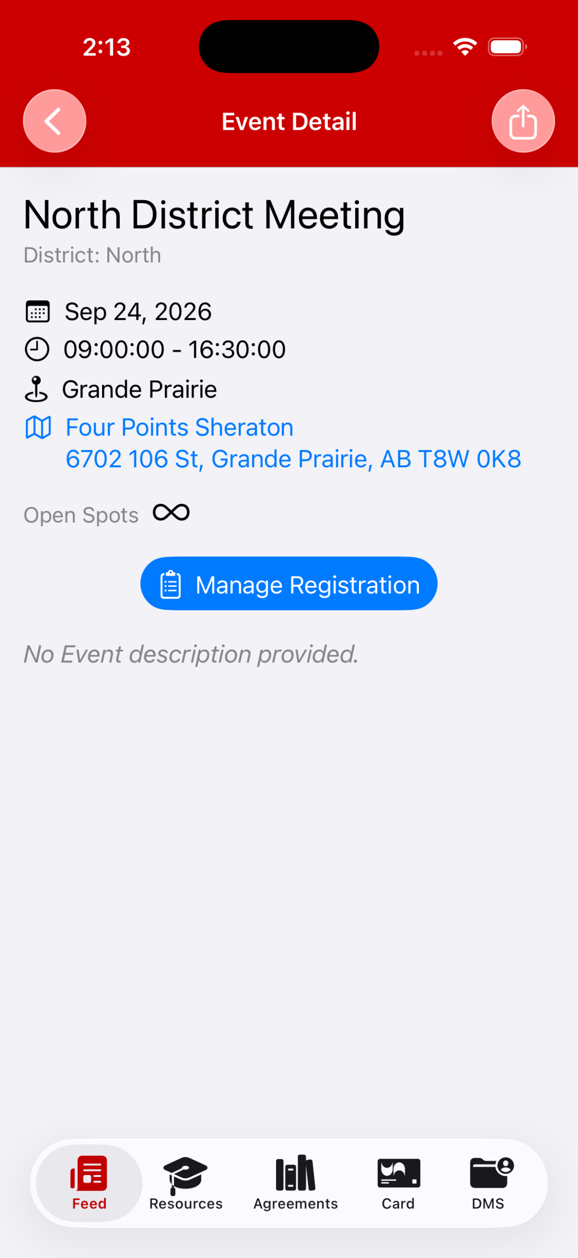 2. Tap on the Event – this will bring you to the Event Detail