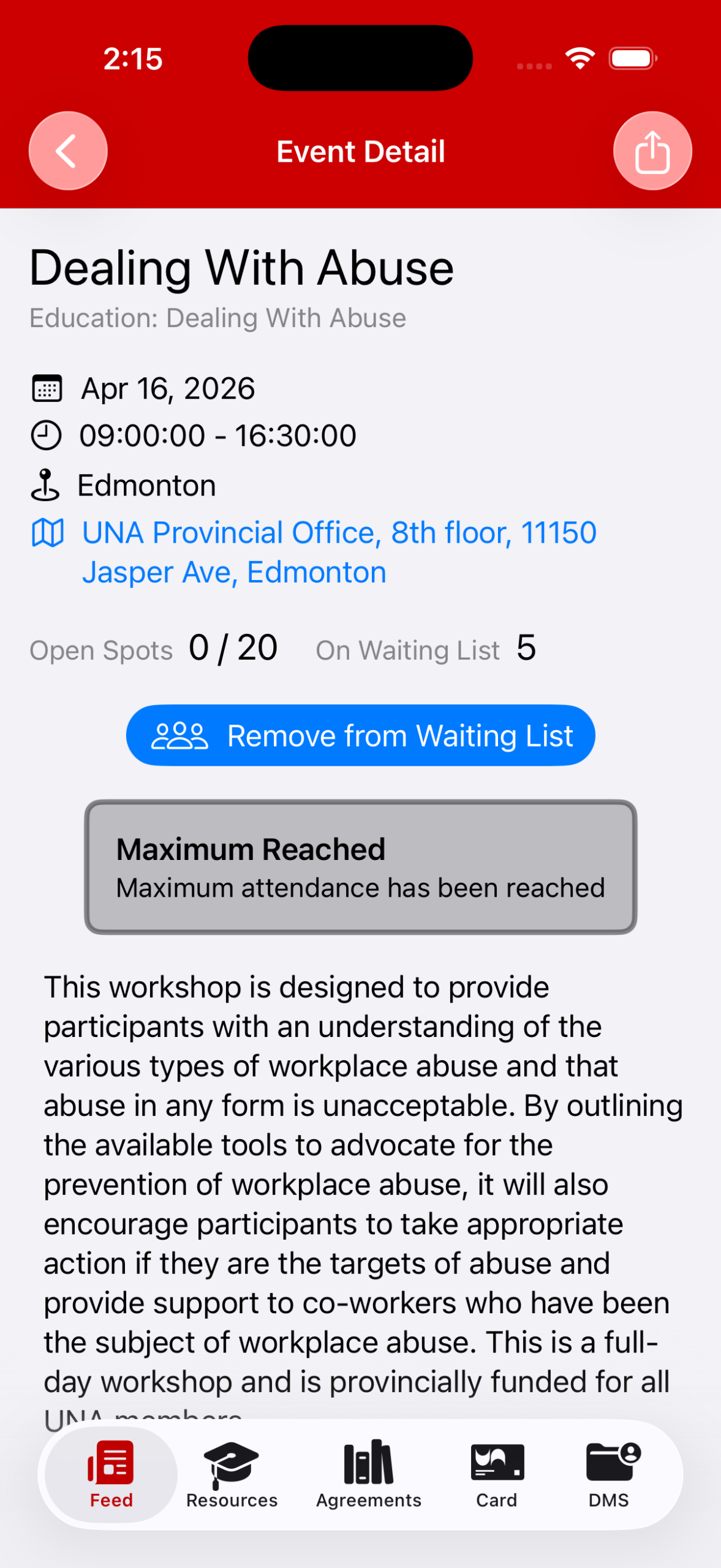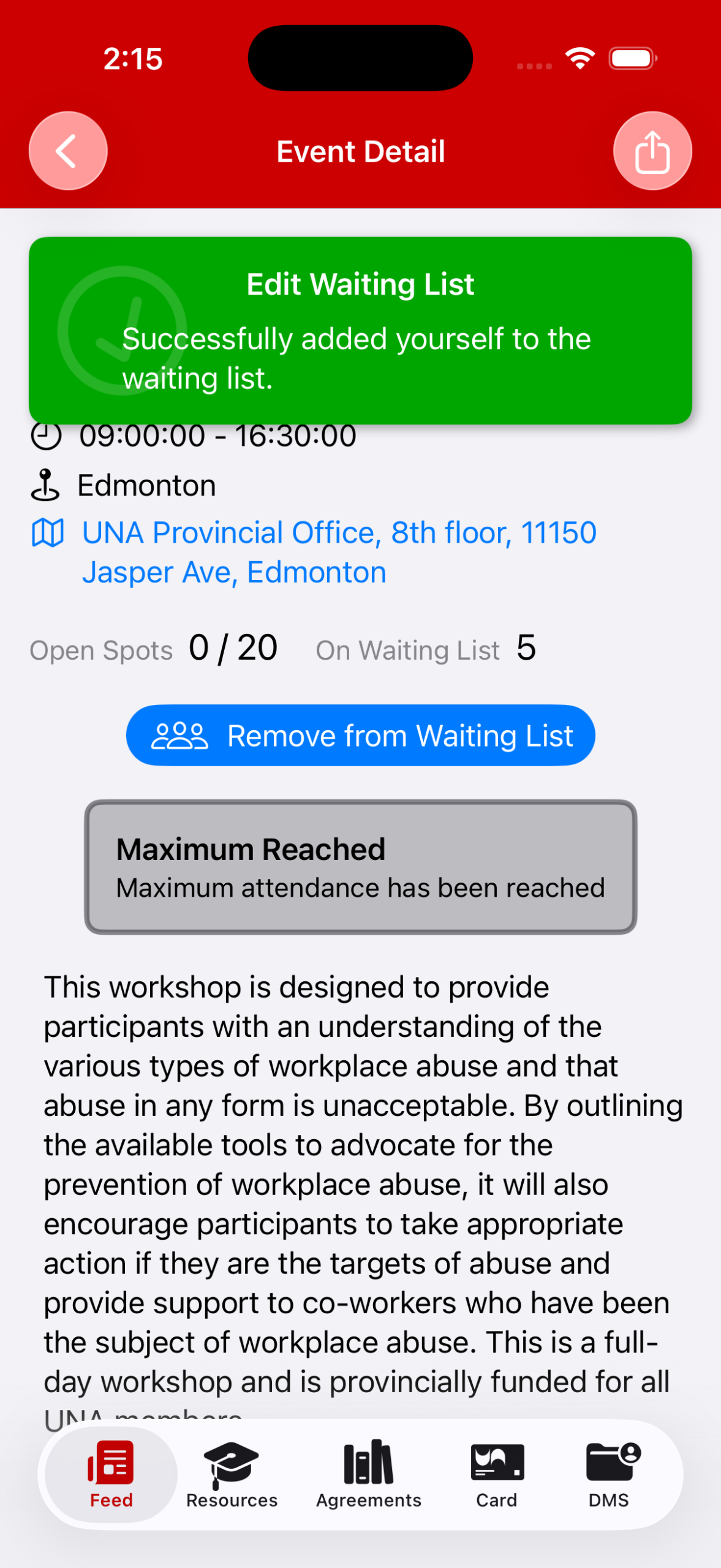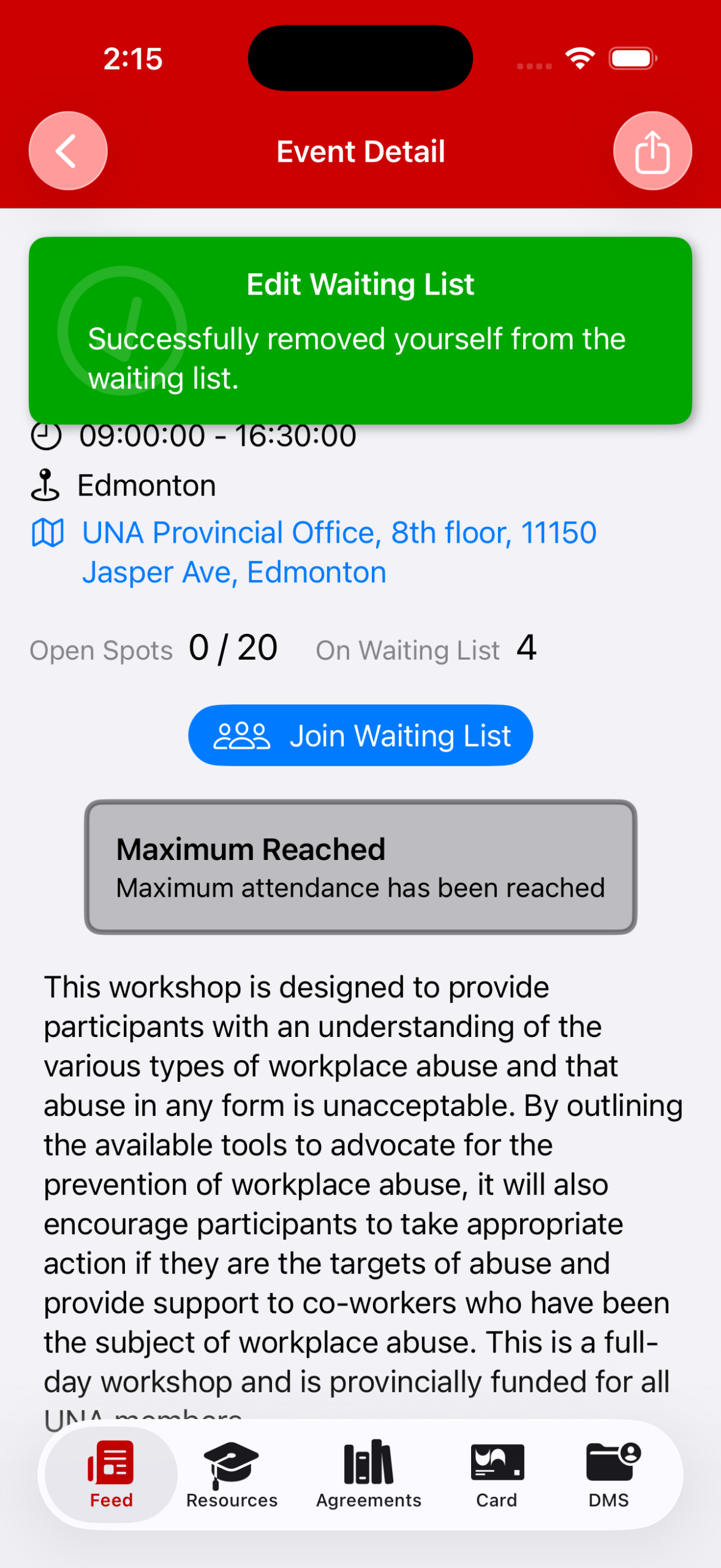 3. You can also remove yourself from the Waiting List in the Event Detail page: